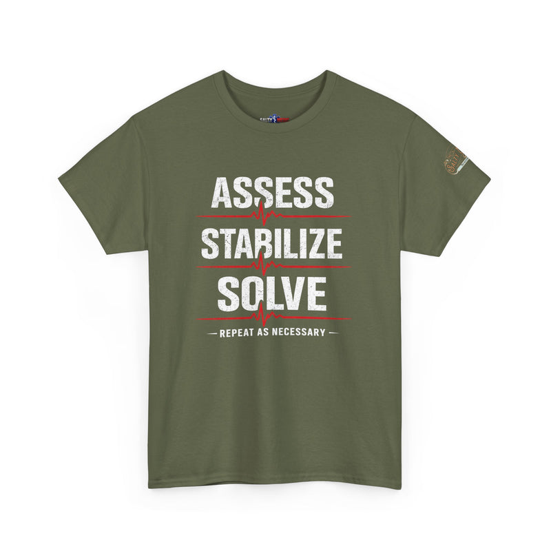 Assess Stabilize Solve EMS T-Shirt – Funny Paramedic & First Responder Tee | The Salty Medic