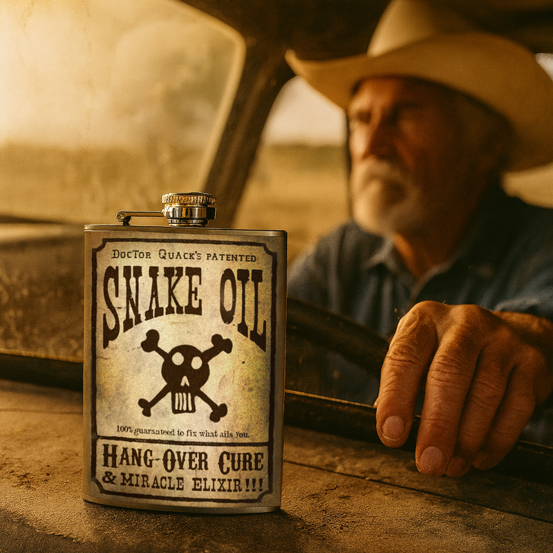 Snake Oil Stainless Steel Hip Flask – 8 oz Vintage Remedy Gift Flask