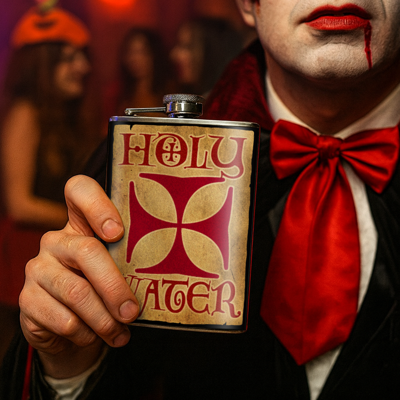 Holy Water Funny Stainless Steel Hip Flask – 8 oz Religious Humor Gift Flask