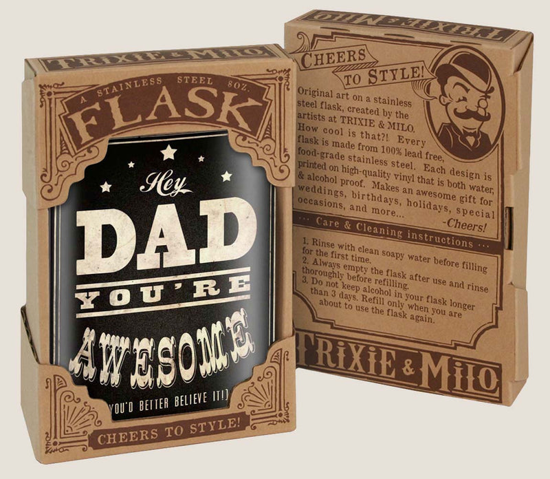 Dad, You’re Awesome! Stainless Steel Hip Flask – 8 oz Gift for Dad