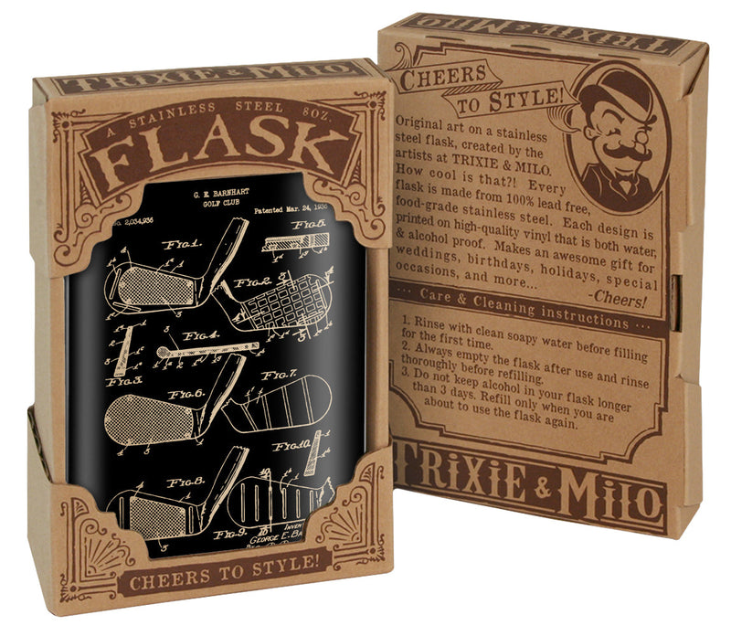Golf Club Diagram Stainless Steel Hip Flask – 8 oz Vintage Golf Flask