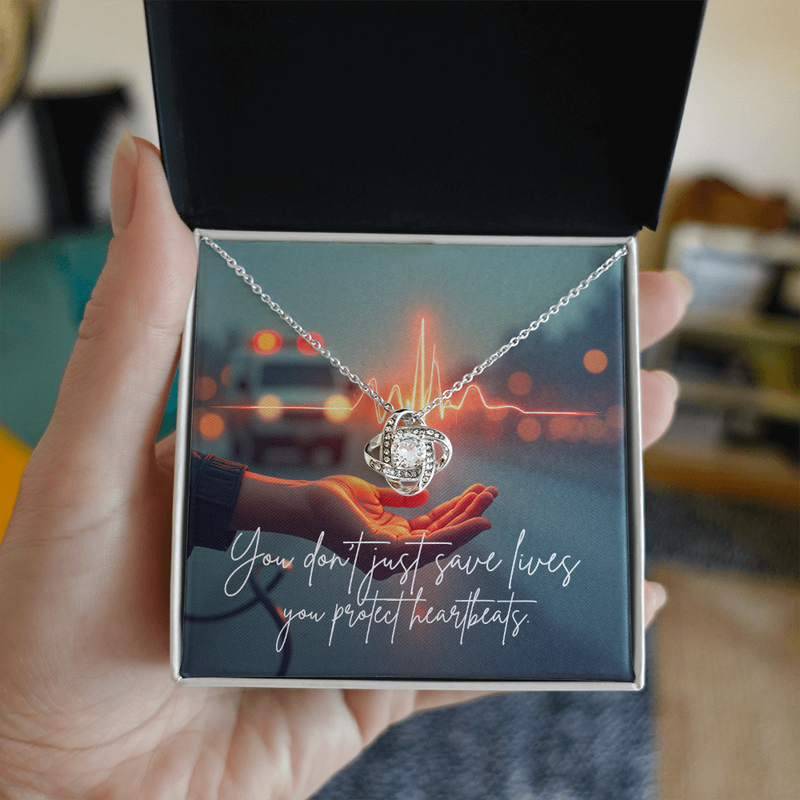 You Don't Just Save Lives — "You Protect Heartbeats" Love Knot Necklace
